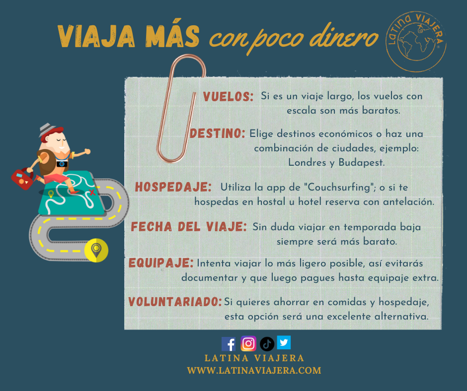 Sin categoría VIAJA MÁS CON POCO DINERO 23 febrero, 2022 Latina Viajera Deja un comentario Si no tienes idea por donde empezar, échale un ojito a la siguiente infografía 😉 Comparte: Haz clic para compartir en Facebook (Se abre en una ventana nueva) Facebook Haz clic para compartir en X (Se abre en una ventana nueva) X Haz clic para compartir en WhatsApp (Se abre en una ventana nueva) WhatsApp Haz clic para compartir en Pinterest (Se abre en una ventana nueva) Pinterest Más Haz clic para enviar un enlace por correo electrónico a un amigo (Se abre en una ventana nueva) Correo electrónico Haz clic para compartir en LinkedIn (Se abre en una ventana nueva) LinkedIn Haz clic para imprimir (Se abre en una ventana nueva) Imprimir Me gusta Cargando...
